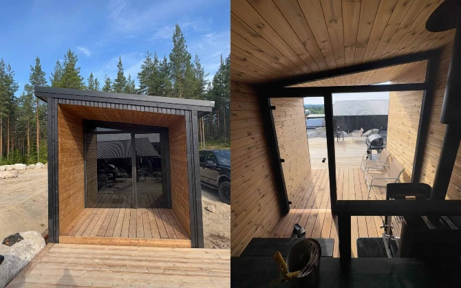 Tästä näppärä ja tyylikäs S-maisemasauna täysin löylyvalmiina! – Pääset suoraan saunomaan!
